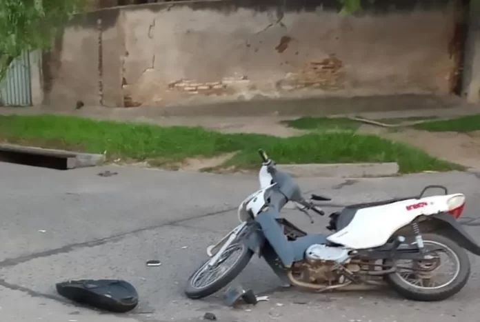 A las 7 de la mañana de este domingo, en la intersección de las calles Leyes Obreras y Ayacucho, se produjo las colisión entre una motocicleta Corven Energy y un auto Peugeot 306.